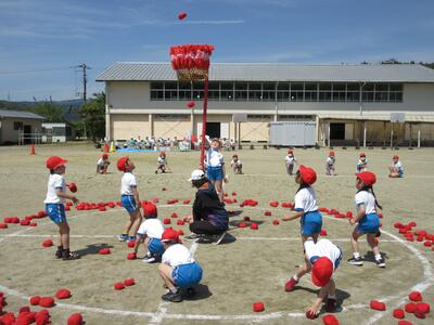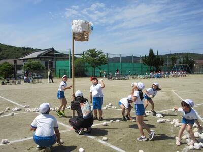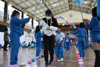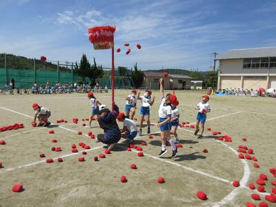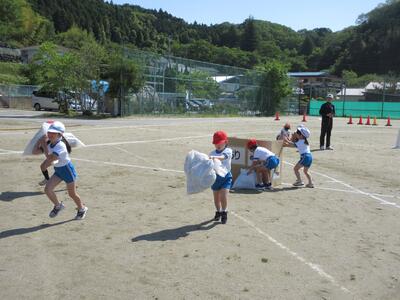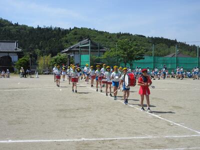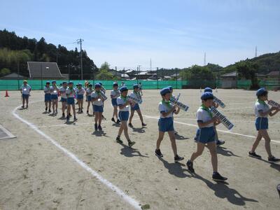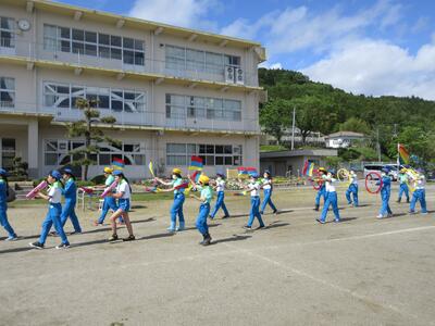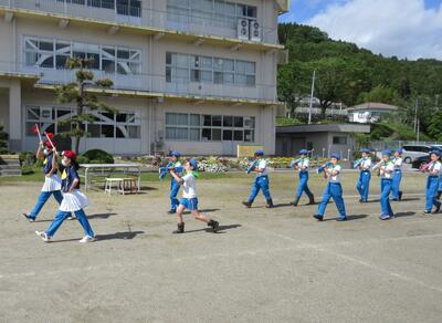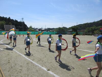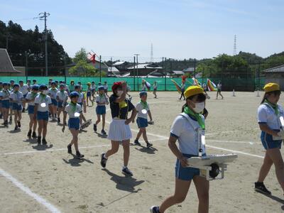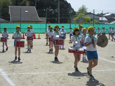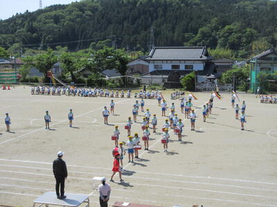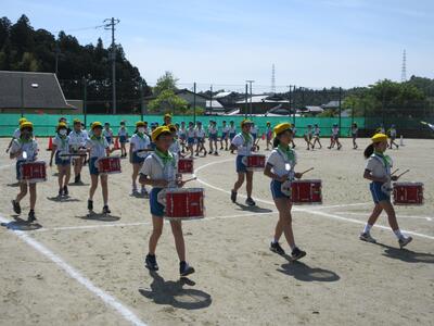 令和5年5月9日(火)、運動会の予行練習をしました。休憩を挟んでの後半は、鼓笛パレード、低学年の玉入れ、中学年の大玉ころがし、高学年の綱引き、紅白対抗リレー、閉会式を行いました。今日の鼓笛パレードは、衣装を揃え、とてもすてきに演奏、行進できました。玉入れは、1年生に続いて2年生が実施し、その合計で競いました。本番はどのような結果になるでしょうか。