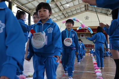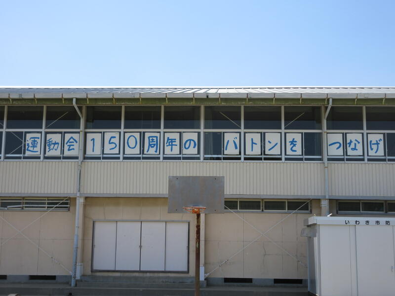 令和5年5月13日(土)に予定している運動会は、創立150周年の節目の運動会です。スローガンは、「運動会 150周年のバトンを つなげ」です。運動会を通して、上遠野小学校の歴史を感じるとともに、思い出に残る運動会にしたいと考えています。体育館の窓にスローガンを掲示しています。