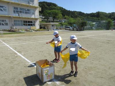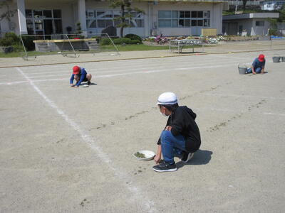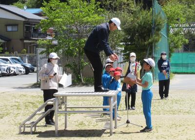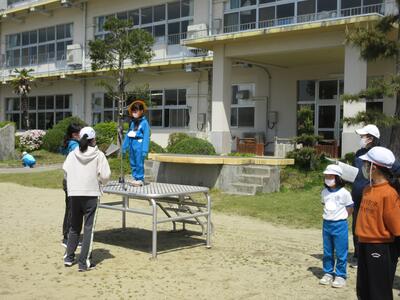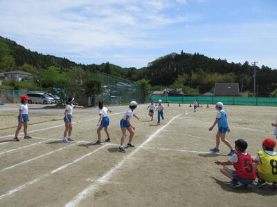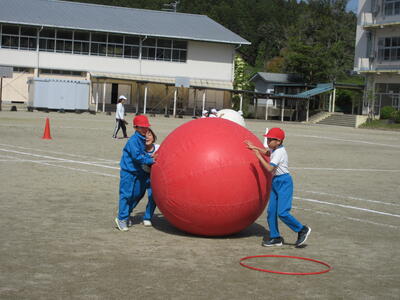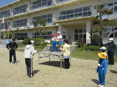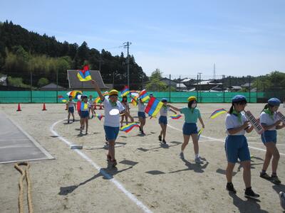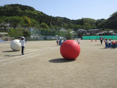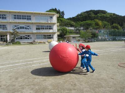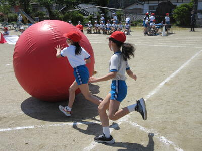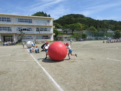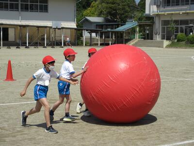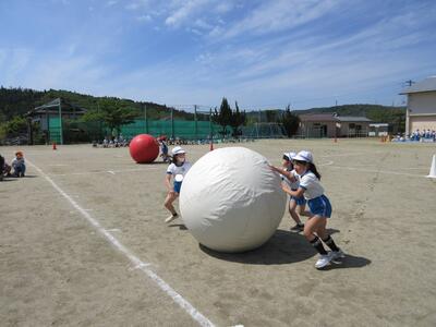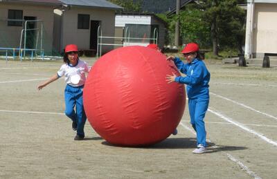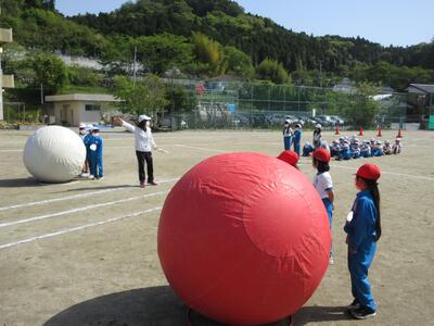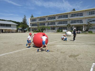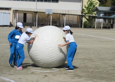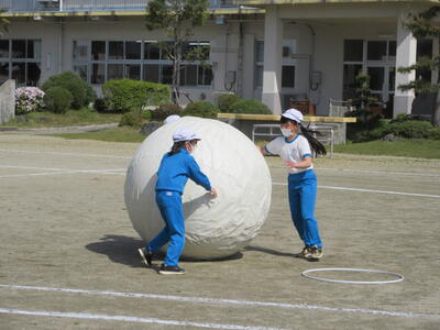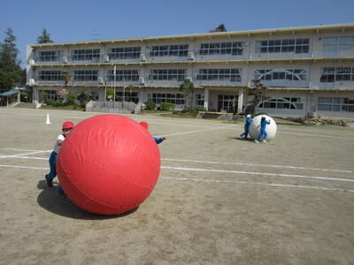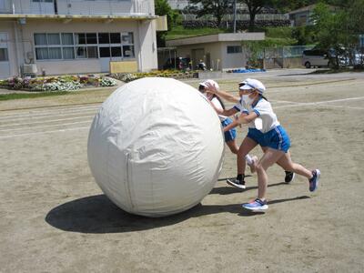 令和5年4月28日(金)、3・4年生が運動会の練習をしていました。昨年度は、団体種目を感染症対策のため、全学年、紅白玉入れとしていました。今年度は、コロナの感染状況が改善され、5月8日(月)からは、5類感染症へ位置づけの変更が予定されています。また、創立150周年ということもあり、以前の団体種目を復活しました。3・4年生は、大玉転がしを行います。身長よりも高い大玉を3人の力を合わせてころがします。チームワークがポイントです。楽しい競技になりそうです。