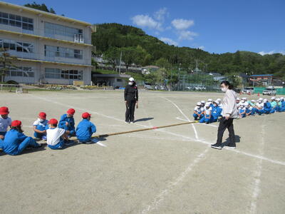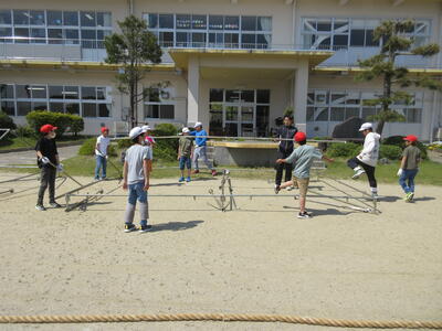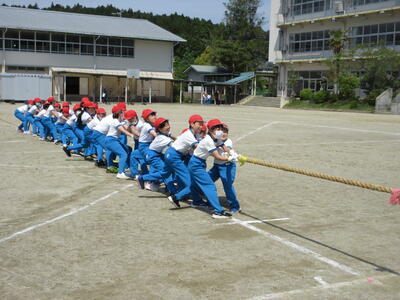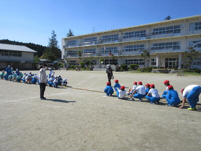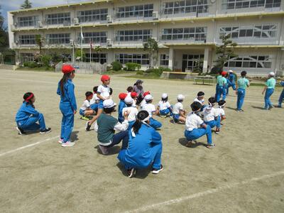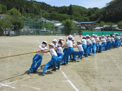 令和5年5月2日(火)、5・6年生が運動会の練習をしていました。創立150周年ということもあり、以前の団体種目を復活しました。運動会伝統の紅白綱引きです。今日は、位置と動きの確認だけでしたが、当日は、互いに全力を出し切る、力強い姿が期待できますね。
