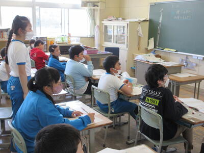 3年生は、「節分集会」についての紹介です。自分の心の鬼を退治するために行いました。「分からないことがあったら、聞いてください。」と優しくお話ししました。