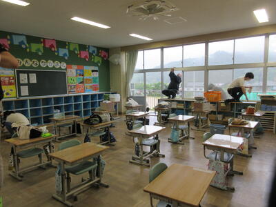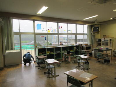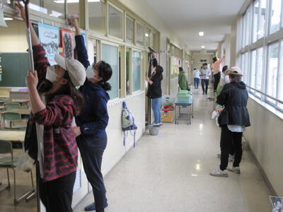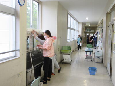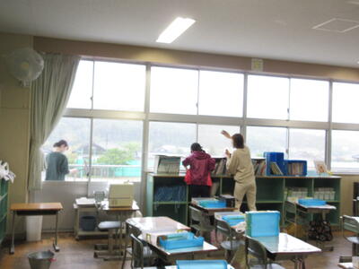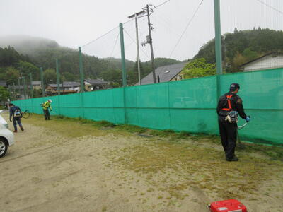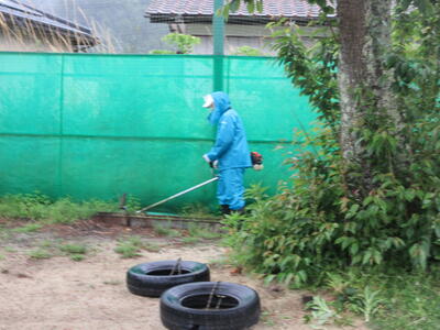 令和5年5月7日(日)に、PTA奉仕作業を実施しました。ゴールデンウイーク最終日の朝7時開始、しかも天候が悪いのにもかかわらず、多くの保護者の皆様にご参加いただきました。運動会前の校庭・校地、駐車場の除草が目的でしたが、雨のため、一部内容を変更しました。草刈り機を使用する方に、校舎周辺や運動会用駐車場の草刈り、その他の保護者の皆様に、教室や廊下などの窓拭き、草刈りした片付けをしていただきました。職員も除草や窓拭き、トイレ掃除を行いました。校地、校舎共に、きれいになり、気持ちの良い環境で、子ども達は、学習や運動に取り組むことができます。保護者の皆様のご協力に感謝いたします。なお、作業の様子を一部掲載します。ご協力いただいた方をすべて紹介できず、申し訳ありません。