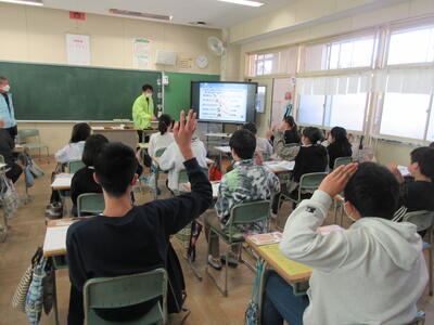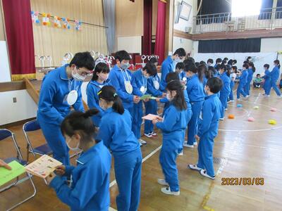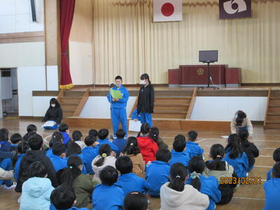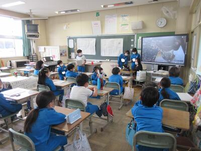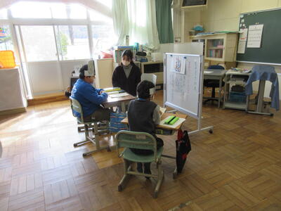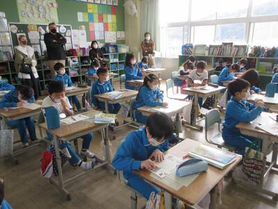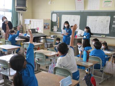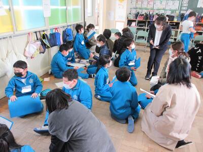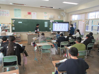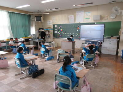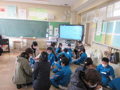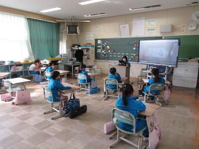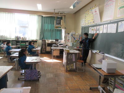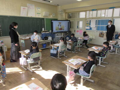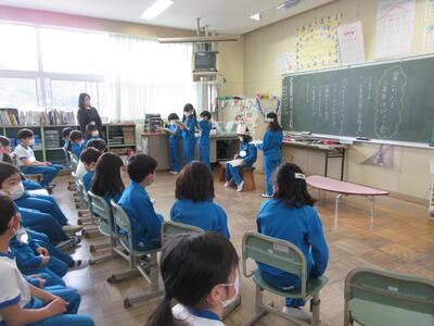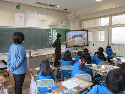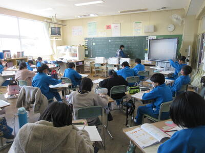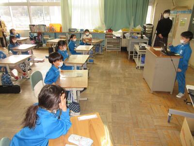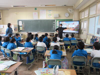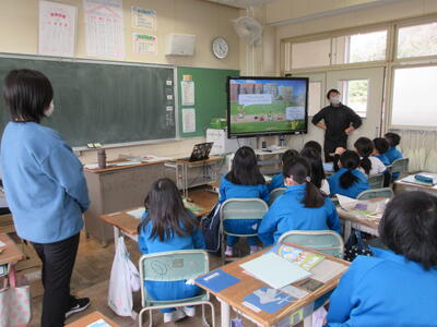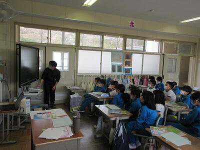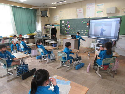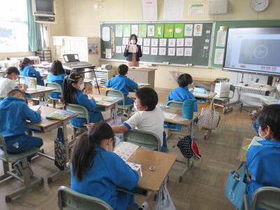 2023年3月6日 14時37分 令和5年3月6日(月)、3年生は、ALTの先生と担任の先生による外国語活動でした。ALTの先生の説明は、ほとんど英語だけでしたが、電子黒板の画面とジェスチャーでほとんど理解できるようでした。「My name is Raichu.R-A-I-C-H-U.」「Do you like sport ?」「Yes !! I do!!」…まねして発音します。