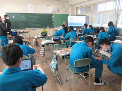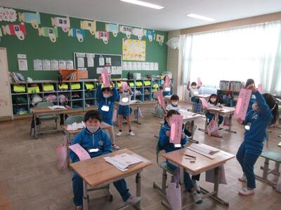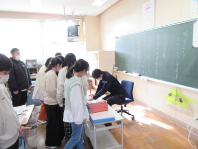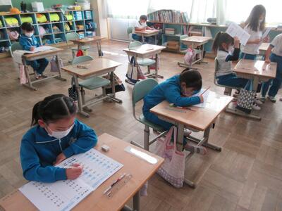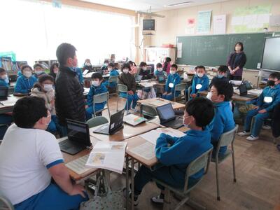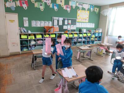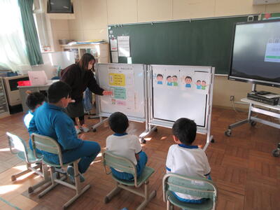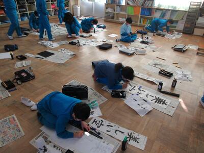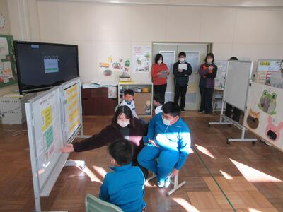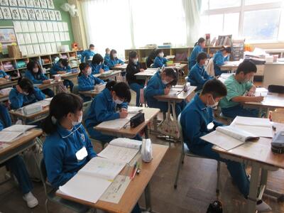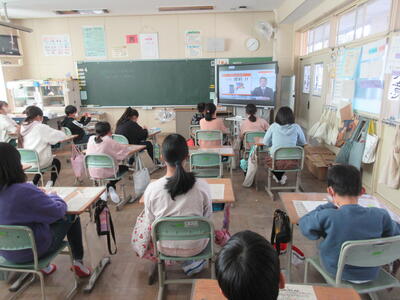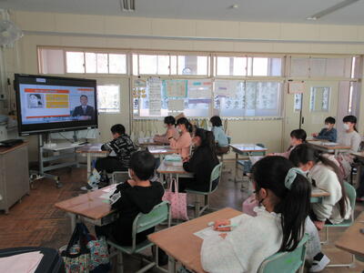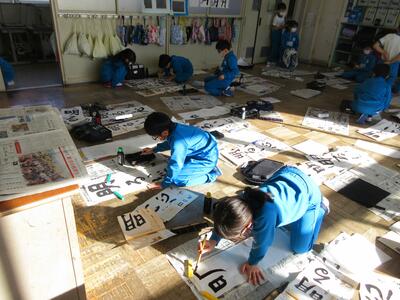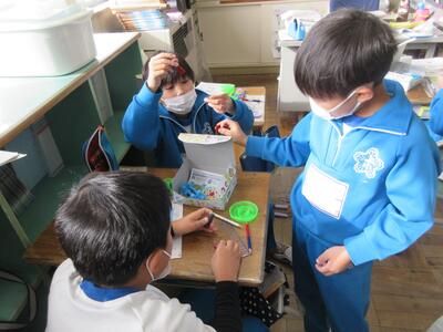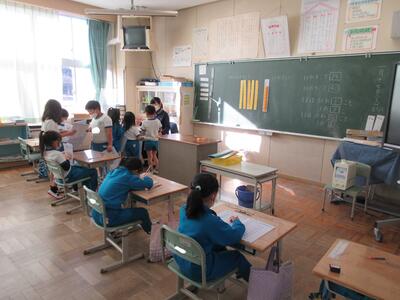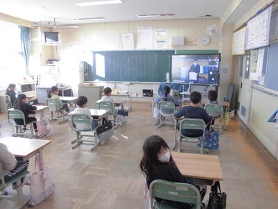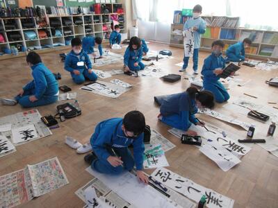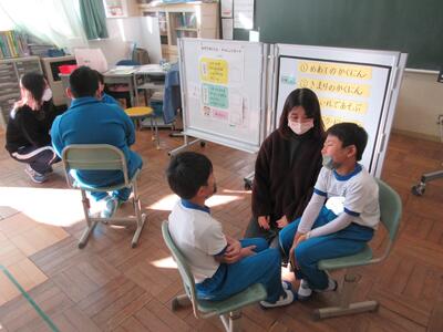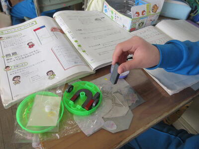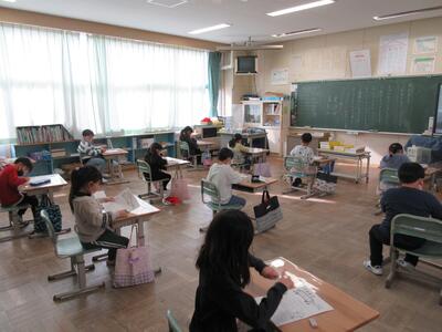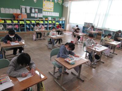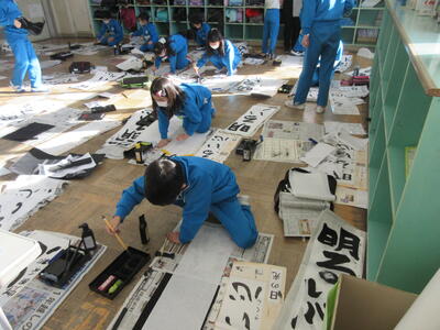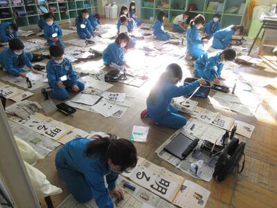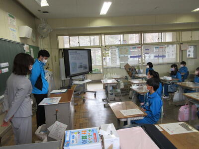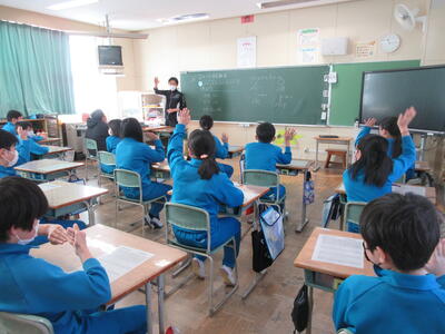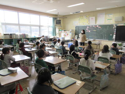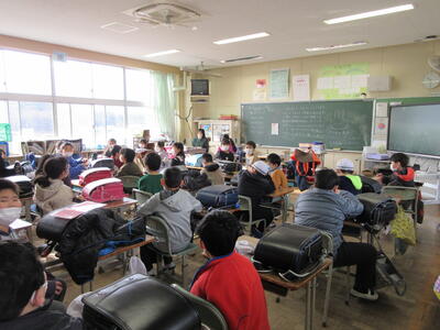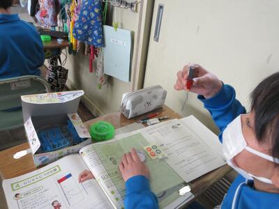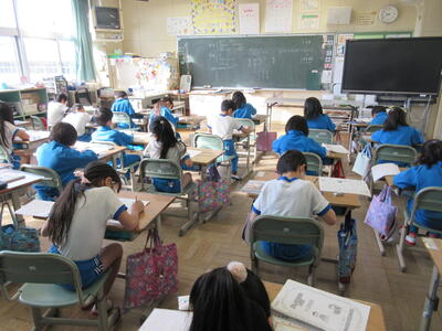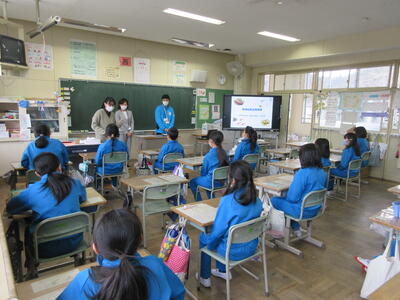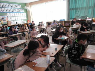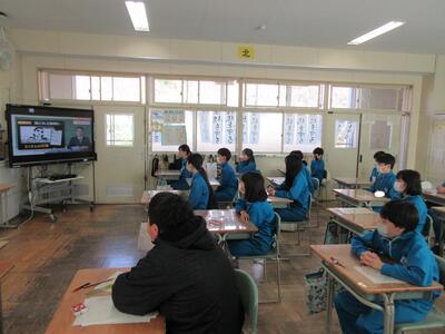 令和5年1月16日(月)、5年生は図工の授業「ミラクル、ミラーステージの制作」でした。ミラー工作用紙を使って、広がりある作品を作ることができます。今後の進み具合に期待します。 6年生は、ALTの先生と外国語(英語)の授業。結構な分量の会話文を読解していました。「What's your best memory,Emily?(エミリー、最高の思い出は何)」「My best memory is our school trip.(修学旅行)」… 分かるところは赤でアンダーライン、分からないところは青でアンダーラインした後、グループで確認していました。