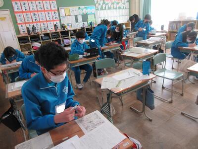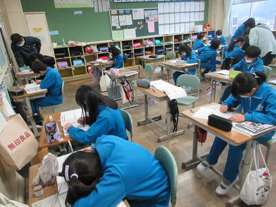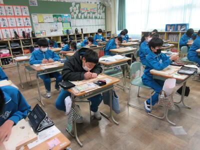 6年生は、卒業文集の清書です。600字程度の分量になります。6年間の思い出が一杯詰まっていますね。