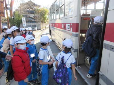 出発にあたり、担任の先生から3つの「あ」(あいさつ、安全、後片付け)についてお話がありました。子どもたちは、路線バスに乗って整理券を取り、料金も一人ひとり払いました。他のお客さんへのマナーも守れたようです。とても良い社会勉強になったと思います。