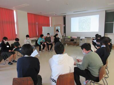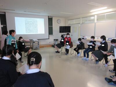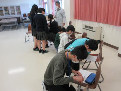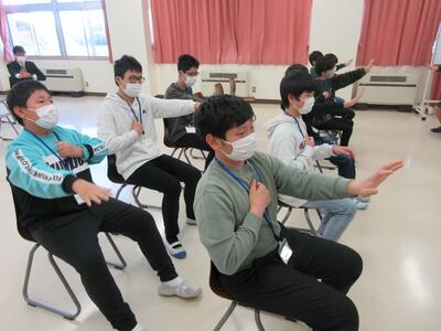 もしかめ体操は、歌に合わせて、グー、パーを入れ替えながらする体操です。歌いながら体を動かす、口も動かすもので、介護予防に効果的だそうです。どの活動も、高校生と交流しながら、頭と体を使うことを実感できました。福祉分野の人材の必要が高まっている現在、介護に関わる職業への興味や理解につながったと思います。
