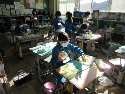 令和4年12月16日(金)、6年生が磐城農業高校を訪問してきました。これは、本校が県教育委員会から専門高校生による小中学生体験事業の対象校として指定を受けているからです。はじめに、磐城農業高校の校長先生より、4つの学科について説明を受け、「将来の進路の参考にしてほしい。」とごあいさつをいただきました。2つのコースに分かれ、生活科学科の高校生とともに、体験学習を行いました。