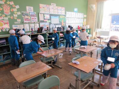 令和4年12月23日(金)、第2学期の終業式の前に、愛校作業を行いました。前半はいつもの清掃場所、後半は教室の清掃です。自分たちが使っている学校に感謝の気持ちを持って、いつもはできない、窓やロッカーの中を含め、隅々まで丁寧に清掃活動を行っていました。床の雑巾がけをする手に、いつもより力がこもっていました。