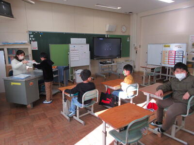 令和5年1月6日(金)、今日は先生方が出勤し、児童を迎えるため、黒板にメッセージを書いたり、教室を整頓していました。