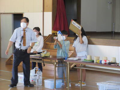 令和4年9月29日(木)、3年生を対象に、医療創生大学客員教授の先生を講師に迎え、放射線教室を開催しました。新型コロナウイルス感染防止のため、会場を体育館に設定し、十分な間隔をとるとともに、ドアや窓を開放するなど、感染防止対策を徹底しました。