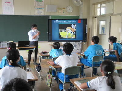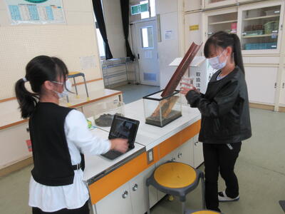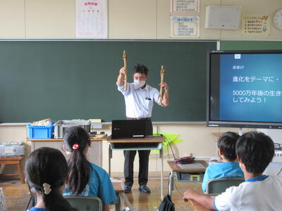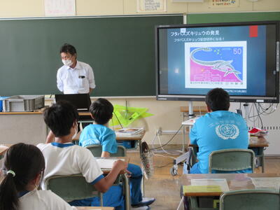 令和4年10月4日(火)、いわき市石炭化石館の副館長さんを講師に、6年理科「大地のつくり」の学習内容と関連した出前授業「おもしろい化石の世界」を実施しました。