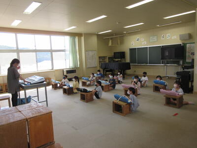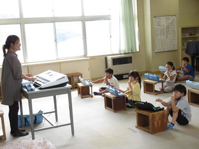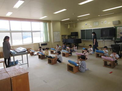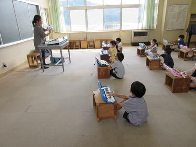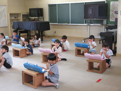 歌と鍵盤(黒鍵、白鍵)の位置が合っていて、なるほどと思いました。子どもたちは、初めてのピアニカ演奏をとても楽しみました。