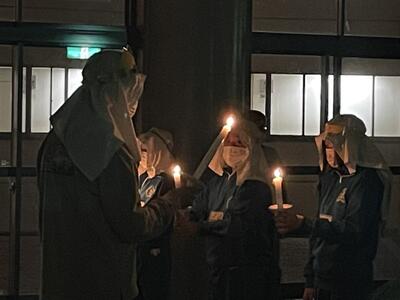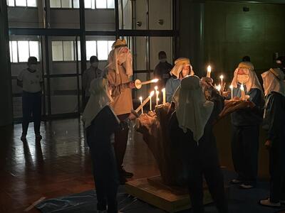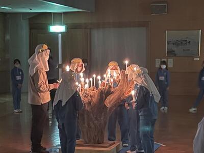 昨夜、雨のためキャンプファイヤーから急遽キャンドルファイヤーに変更し、活動を行いました。火の神から「知恵」「勇気」「友情」「希望」の火をいただき、みんなのろうそくに点火しました。5年生みんな、ここに集えた喜びを感じながら、楽しく過ごしていました。