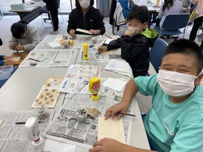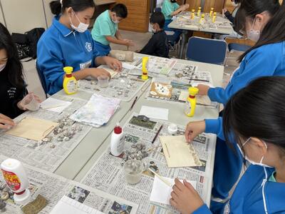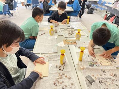 雨のため磯遊びの活動が貝の壁飾り作りに変更になりました。