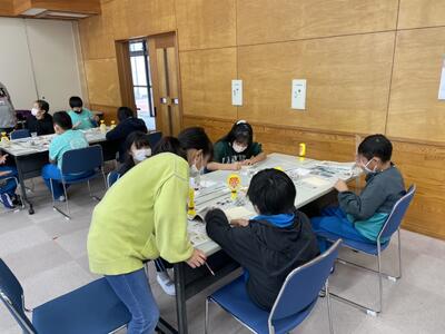 子どもたちは、宿泊活動の思い出づくりに取り組んでいます。