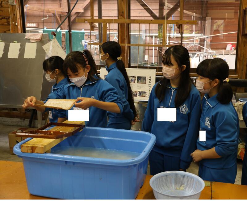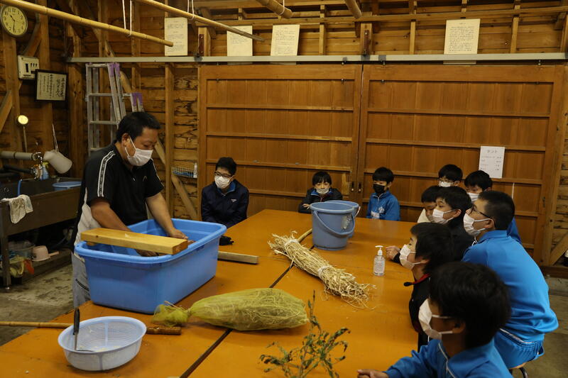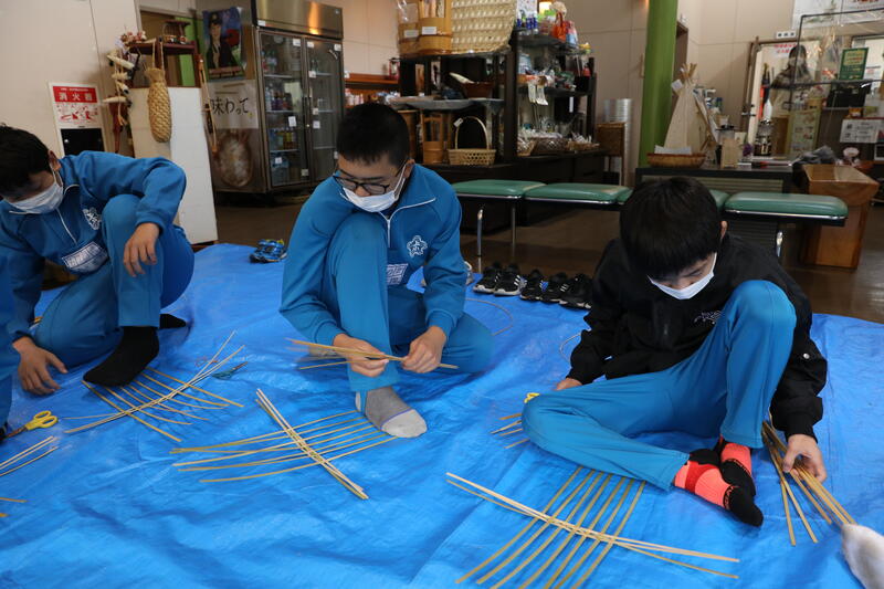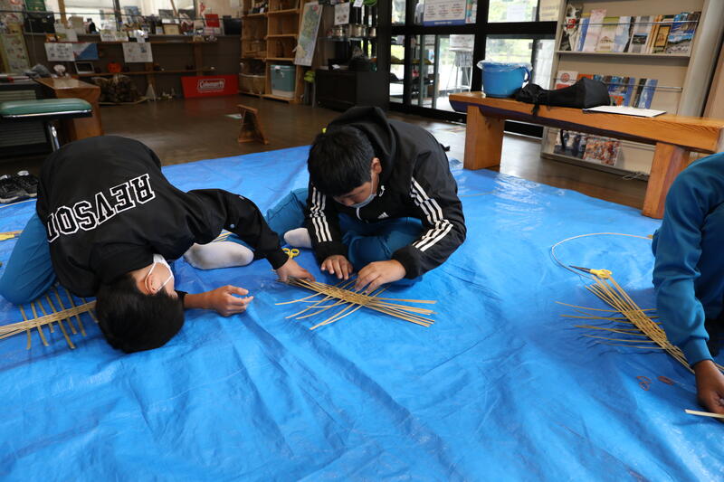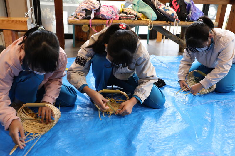 6年生が遠野オートキャンプ場に行き、竹かご作りと紙すき体験をしてきました。