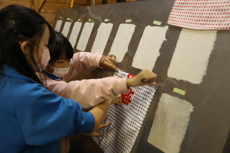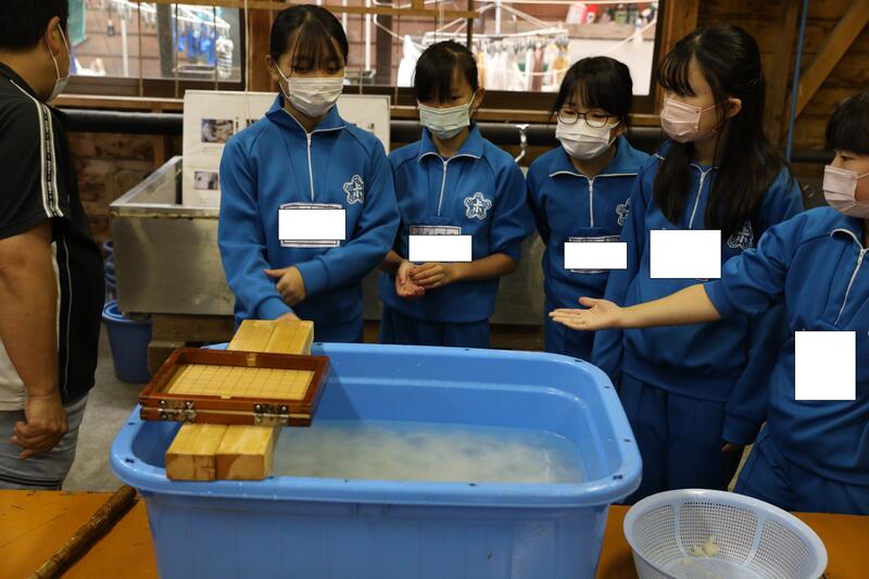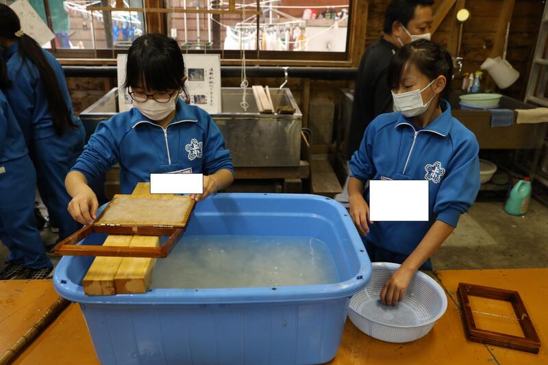紙が均一の厚みになるように手でかき混ぜたり、一苦労です。
