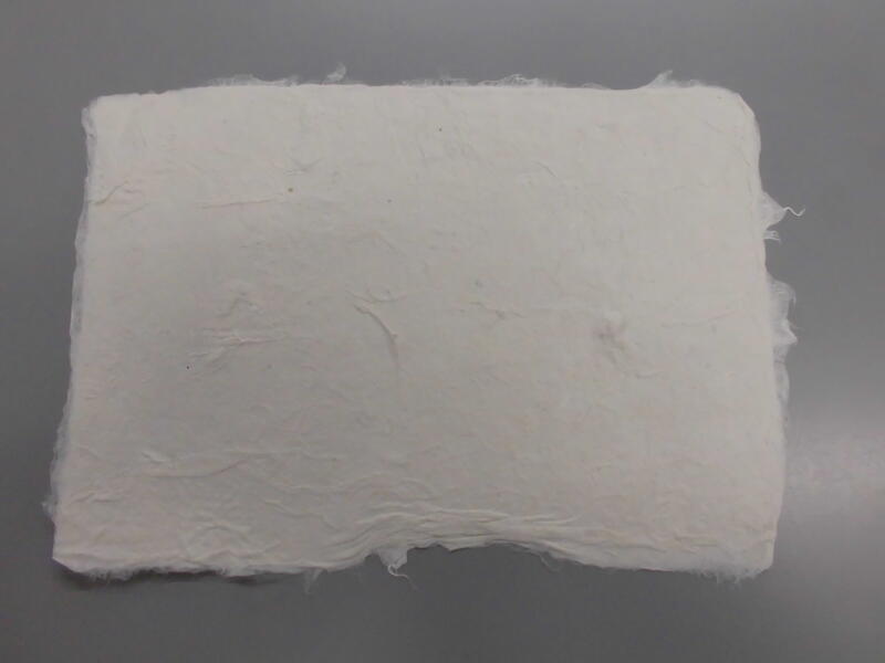 これが完成した和紙(ハガキサイズ)です。自分で作った和紙、特別なものになりますね。
