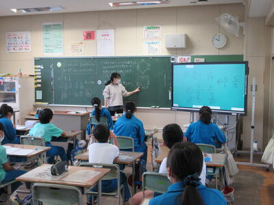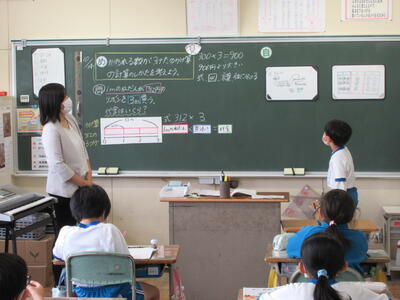 令和4年10月14日(金)、校内授業研究会として、3年生の算数「3けたの数に1けたの数をかける計算」で、研究授業を実施しました。本校では、教員の授業力向上を目指し、1人1回の授業研究会を予定しており、その5回目です。