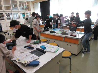 放射線は、地面や空気、野菜や果物など、身の回りにいつでもあって、放射線量を受ける量をゼロにすることはできないそうです。放射線測定器GMサーベメータを使った実験で、空気中にある放射線や日常にある物から出る放射線を測定しました。また、霧箱で放射線が出る様子を見たり、放射線を鉄板やコンクリート、水で遮る実験をしました。いずれも、日常に存在する放射線を利用していますので、健康には影響ありません。今後も、放射線を正しく理解する機会をつくっていきたいと思います。