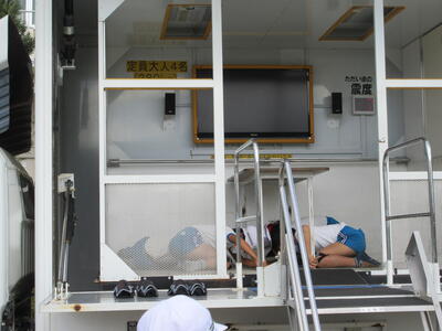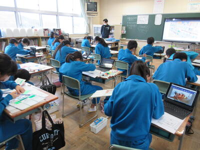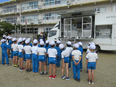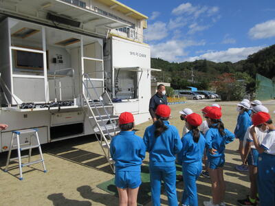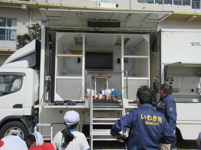 令和4年10月20日(木)、3年生がいわき市役所の出前講座「自然災害に備えて、みんなで防災」を受けました。起震車で地震を体験して、大きな地震が発生した際に、命を守る行動をとることができるようにすることが目的です。ちなみに、起震車は福島県に1台しかない特別な車で、過去に発生した大地震を体験できるほか、最大震度7まで体験できます。