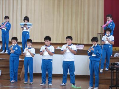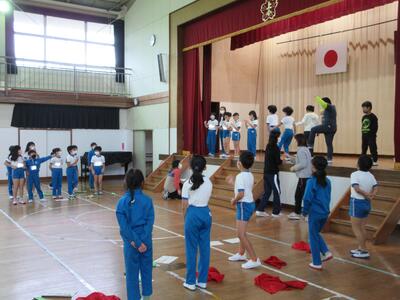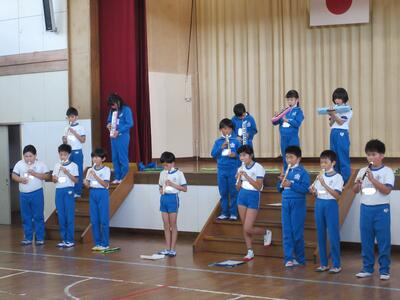 2022年10月21日 11時35分令和4年10月21日(金)、4年生が体育館で、あすかい発表会の練習を行っていました。発表当日は、日本各地の伝統的なお祭りや踊りを披露し、「ソーラン節」を合奏するそうです。今日は、リコーダー、鍵盤ハーモニカ、木琴・鉄琴、太鼓ごとに、ソーラン節のパート練習を丁寧に行った後、全体で合奏を行っていました。観る人、聴く人に元気を与えそうですね。