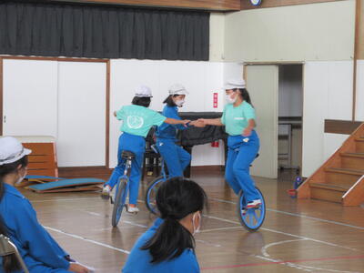 5年生もあすかい発表会の練習をしています。跳び箱やマット、縄跳び、一輪車などの発表の予定です。縄跳びと一輪車の練習をしていました。一生懸命な発表が期待できます。練習を重ねて、さらに上手になりそうです。