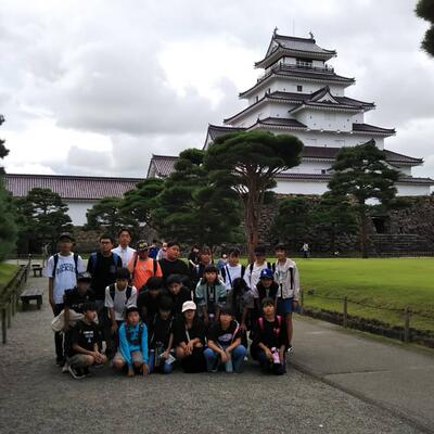 赤べこの絵付け体験が終わり、鶴ヶ城見学を行いました。歴史あふれる鶴ヶ城について学び、修学旅行も終わりになります。