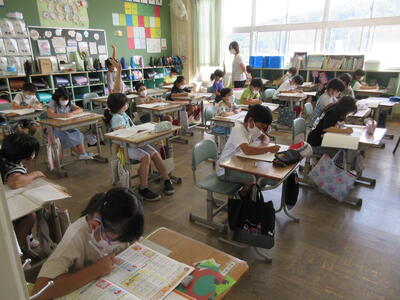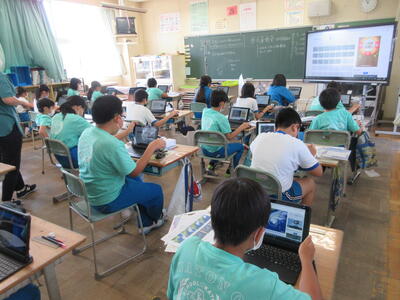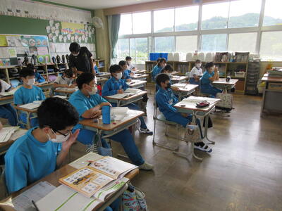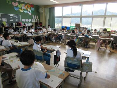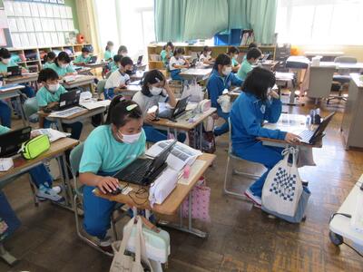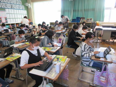 5年生は、理科の授業、台風はどのように動くか、天気はどのように変わるかを調べていました。しっかりとデータを読み取り、まとめることができます。実際の天気予測に役立ちそうですね。あいにく、週末には、台風14号が本州を通過するとの予報が出ています。大雨や暴風、土砂災害が心配されますので、くれぐれもご用心ください。