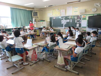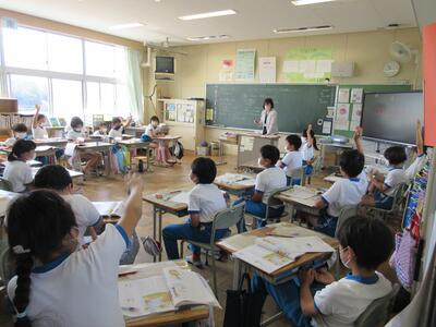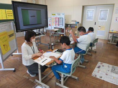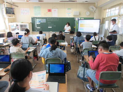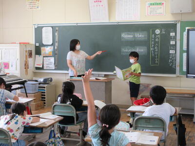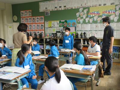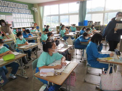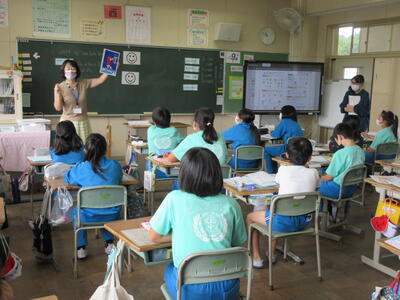令和4年9月21日(水)、英語教育サポートスタッフの先生に来校いただき、5・6年生で、外国語の授業をしていただきました。