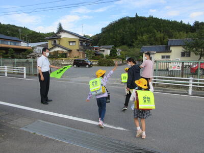 令和4年9月21日(水)から30日(金)までの10日間、秋の全国交通安全運動期間となります。早速、本日から、交通安全母の会による朝の交通安全指導をしていただいています。ありがとうございます。学校でも、生徒指導主事から放送で全校児童に、「止まる」「見る」「待つ」を守り、命を大切にすることを伝えました。運動期間中、下校指導も行いますので、交通事故防止にご協力お願いします。
