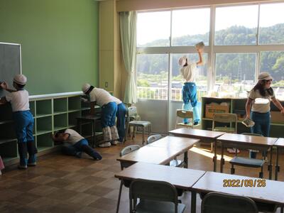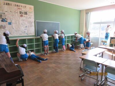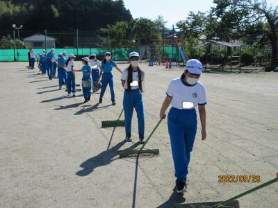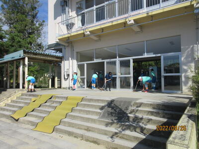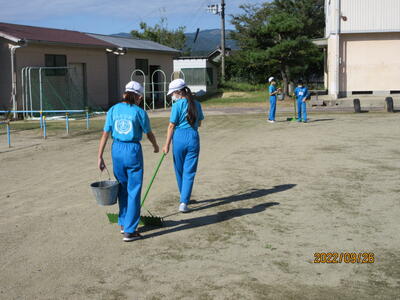 令和4年9月26日(月)、全校児童で愛校活動として、美化活動を行いました。1・2年生が校庭の除草、6年生が校庭のレイキかけと石拾い、3・4生が特別教室や廊下、階段の清掃、5年生が昇降口と職員玄関の清掃に取り組みました。子どもたちは、一生懸命取り組み、汗ばむほどでした。校舎内や校庭がきれいになり、学校が明るくなった感じがしました。全校児童、教職員ですがすがしい時間を過ごすことができました。