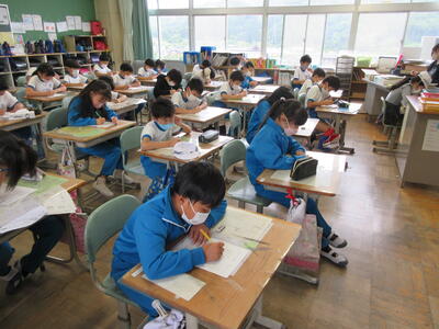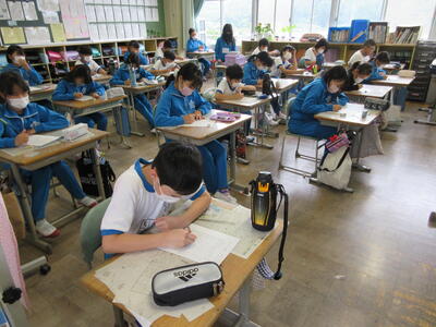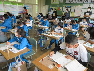 令和4年6月14日(火)、3年生は国語の授業、案内の手紙の書き方について学習していました。実際に、今日の勉強をもとに、17日の授業参観の案内を、お父さん、お母さんに、書いて届けるそうです。とてもうれしそうでした。やはり、保護者の方に自分の学習する姿を見てもらうのは楽しみなんですね。保護者の皆様も、楽しみにしてください。