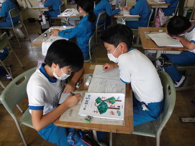 4年生は、総合「福祉について調べよう」です。福祉をキーワードにイメージマップを作成していました。授業の後半に発表の予定でした。