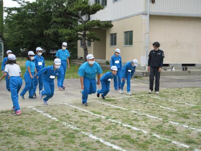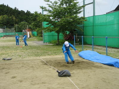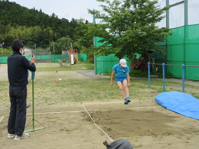 令和4年6月14日(火)、6年生は体育の授業、市陸上大会の練習をしていました。100m走、走り幅跳び、ソフトボール投げの3つのグループに分かれての練習です。100m走では、スタートの仕方を確認し、スタートダッシュをしていました。走り幅跳びでは、走るスピードを生かしながら、腕をうまく使えるように心がけていました。ソフトボール投げでは、自分の記録を確認し、目標を持って練習していました。大会は、来週の6月23日(木)です。全力を出せることを期待しています。