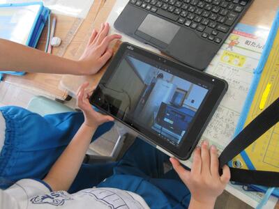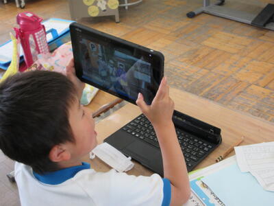 教室に戻って、タブレットで撮った写真を電子黒板に送り、まとめていました。小学2年生でも、ここまでできます。今後の発表を期待します。