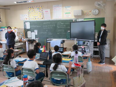令和4年6月15日(水)、雨が少し降りましたが、2年生は地元の9事業所で「町たんけん」を行うことができました。引率していただいた保護者の皆様ありがとうございました。なお、見学にご協力いただいた事業所は、ローソン、下山田精肉店、ジンナイデンキ、Tayu tau hair 、郵便局、公民館、薬のマルト、ひまわり信用金庫、駐在所の皆様です。ありがとうございました。