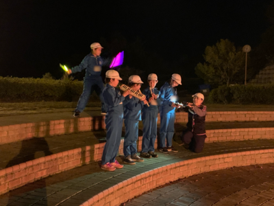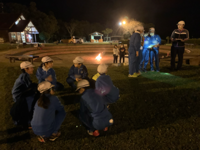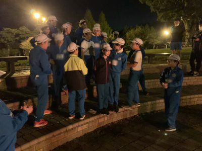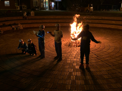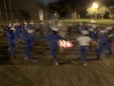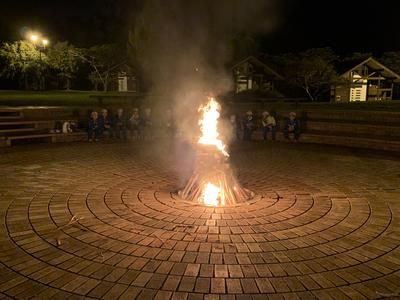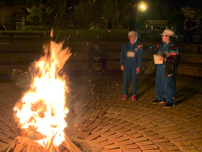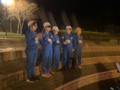 お楽しみ、キャンプファイヤの様子です。歌あり、ゲームあり、踊りあり…。大いに盛り上がりました!