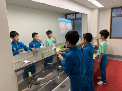 子どもたちは寝過ごすことなくしっかり起床しました。検温もしました。みんな元気です!