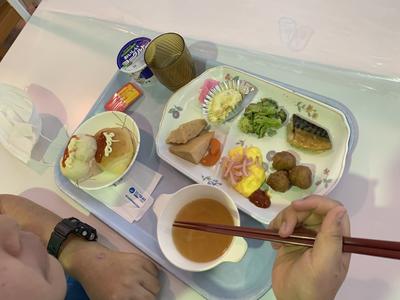 今朝の朝食は、ご飯またはパンから選びます。夕べの食事が結構早い時刻だったので子どもたちはお腹がすいていたようです。しっかり食べましょう‼️