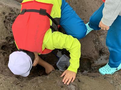 ちょっと風は強かったですけど、子どもたちはウニやカニ、小さな水生生物を見つけて大喜びでした❗️