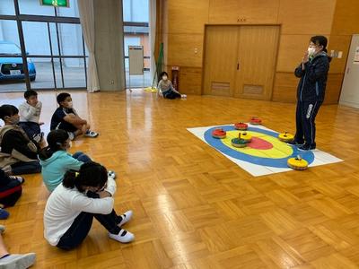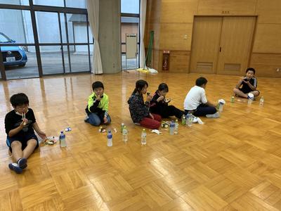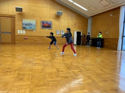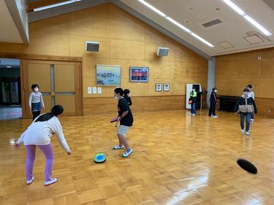 最後の活動になってしまいました。「ニュースポーツ」です。ドッジビー(フリスビー型のものを使うドッジボール)、フロアカーリングの2種目を班対抗で行いました。かなり疲れているとは思うのですが、子どもたちは最後まで元気一杯に取り組んでいました。すごい体力です!