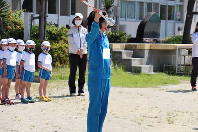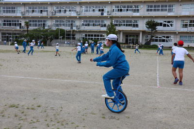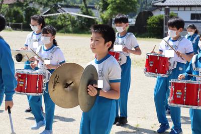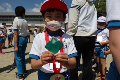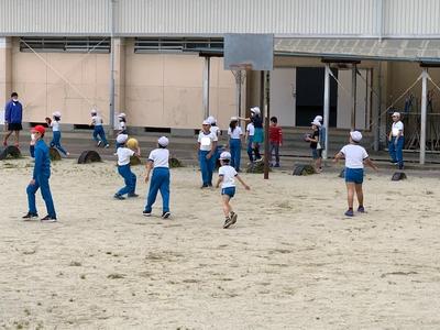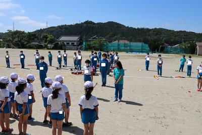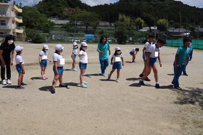 密にならないように校庭で、1年生と6年生のみの参加です。「歓迎のことば」「鼓笛による校歌演奏」「じゃんけんゲーム」「プレゼント贈呈」、それから班に分かれて「鬼ごっこ」や「ダルマさんがころんだ」等を行い楽しい一時を過ごしました。2ヶ月ほど遅れてしまった行事ですが、1年生の笑顔がとても素敵でした!
