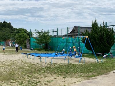 大休憩は普通よりは短い時間でしたが、多くの子どもたちが校庭を走ったり、ボール遊びをしたり、遊具で遊んだりしていました。