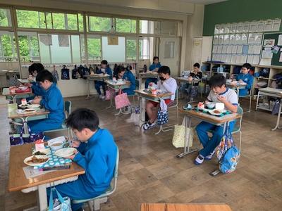 給食はB班にとっても久しぶりです。ご覧の通り楽しい会話はできませんが、高学年の子どもたちからは「カップ麺よりすごくおいしい!」という感想が聞かれました。(それはそうだよね…)