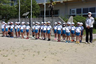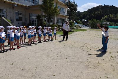 整列したあと校長先生から「朝は、自分から元気よい、気持ちよいあいさつをしよう」「登下校時に車の助手席に乗るときは、ランドセルを背負わずに、しっかりとシートベルトを締めよう」というお話がありました。児童たちは、姿勢よく立派な態度でお話を聞いていました。特に1年生にとっては初めての行事でしたが、真剣に参加することができました!