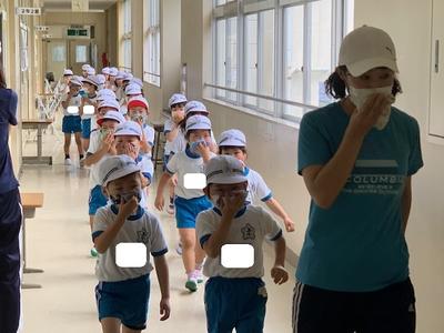 1年生は初めての行事です。担任の先生のお話をよく聞き、約束をしっかり守って行動(避難)できました。上級生も自分たちの避難の様子を低学年児童にお手本として見せることはできませんでしたが、立派な態度で参加することができました。数少ない学校行事ですが、大きな成果を挙げることができました!