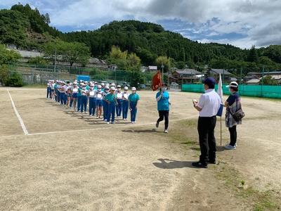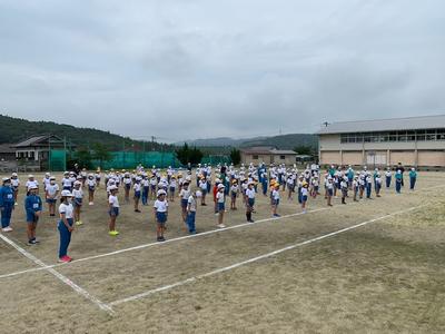 そして、久しぶりに全校生が一堂に集まりました!校庭にて、いつもよりも前後左右の間隔を広くとって整列します。進行をする運営委員にとっても、初めてのお仕事です。