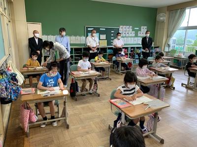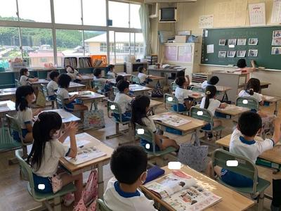 分散的登校が終了し、今日からはいよいよ全員登校日です。昨日までも欠席者は極めて少なかったのですが、今日もほとんどの児童が元気な顔を見せてくれました。